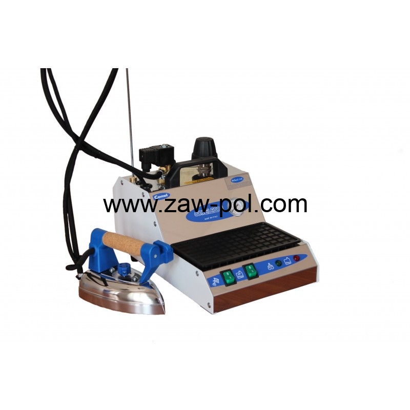 Wraz z wytwornicą otrzymujemy: żelazko Comel 721 PAB małe, podkładkę silikonową, drążek podtrzymujący przewody, elektrozawór z regulacją pary oraz zawór bezpieczeństwa zwiększający komfort oraz bezpieczeństwo pracy.