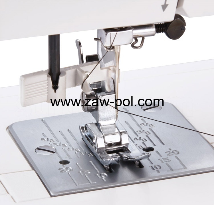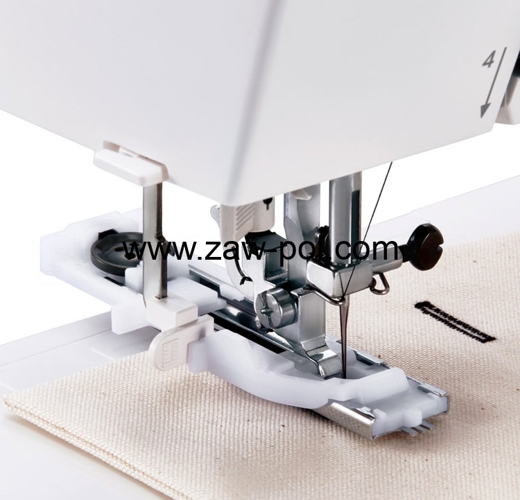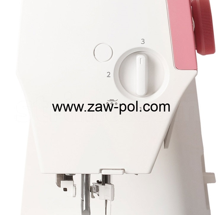 3 stopniowy, regulowany docisk stopki, który pozwalaja na swobodne szycie każdego rodzaju materiału. Zmieniając ustawienia docisku stopki możemy łatwo szyć bardzo delikatne tiule, elastyczne dzianiny, kilka warstw jeansu czy nawet skóry. Długość i szerokość ściegu możemy łatwo regulować za pomocą pokręteł. Żeby przyspieszyć i umilić szycie,