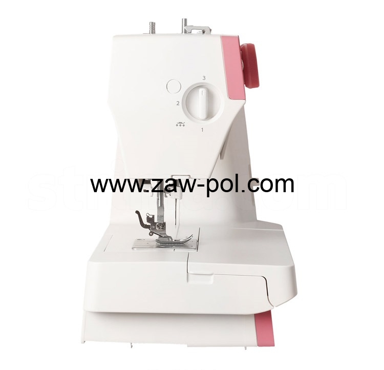 stopkę do przyszywania guzików czy rozpruwacz ściegów. W wyposażeniu maszyny jest też twardy pokrowiec i polska instrukcja obsługi.
