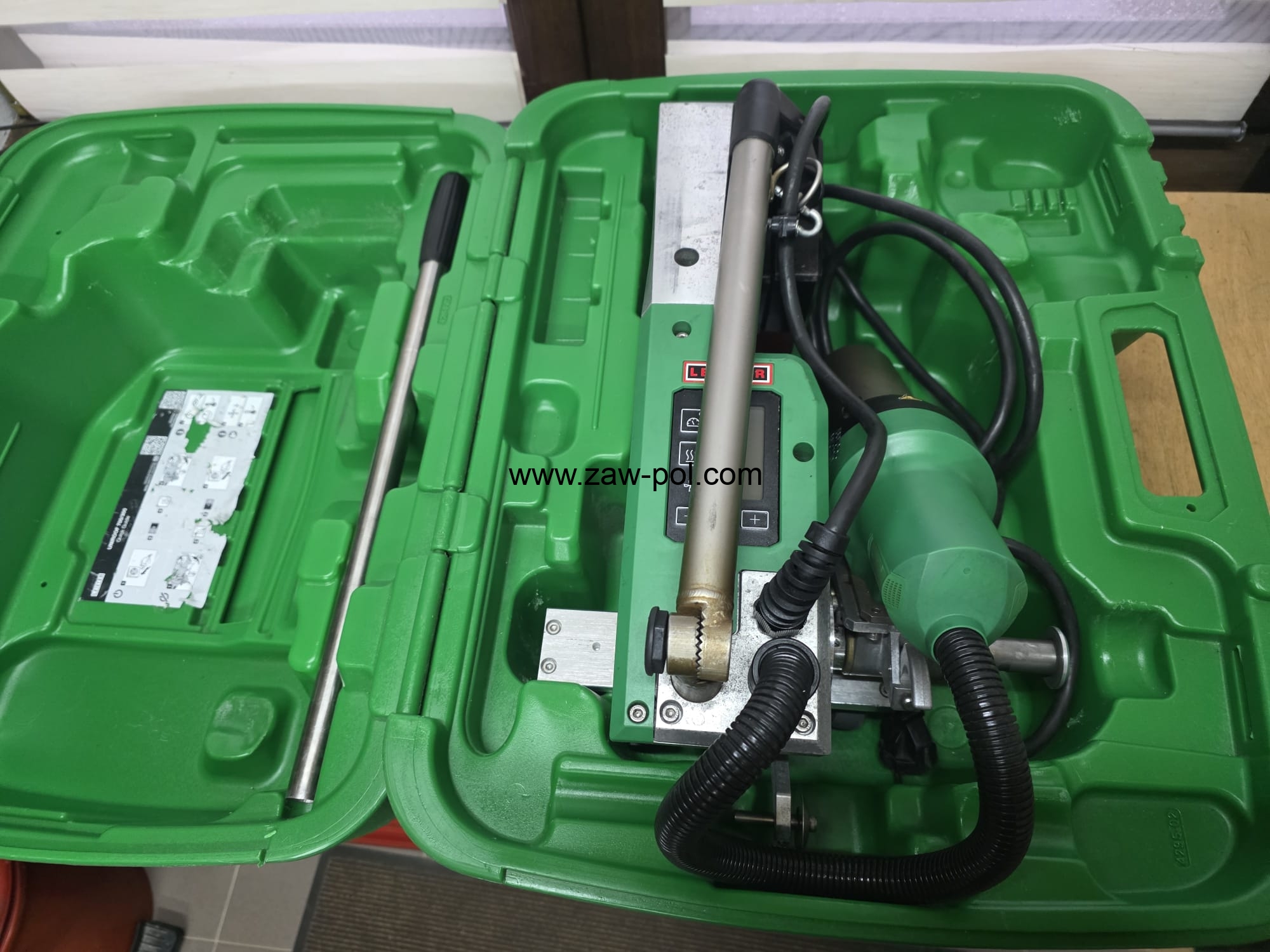 W zestawie: zgrzewarka Leister UNIROOF 300, obciążniki, walizka transportowa, szczotka do czyszczenia.