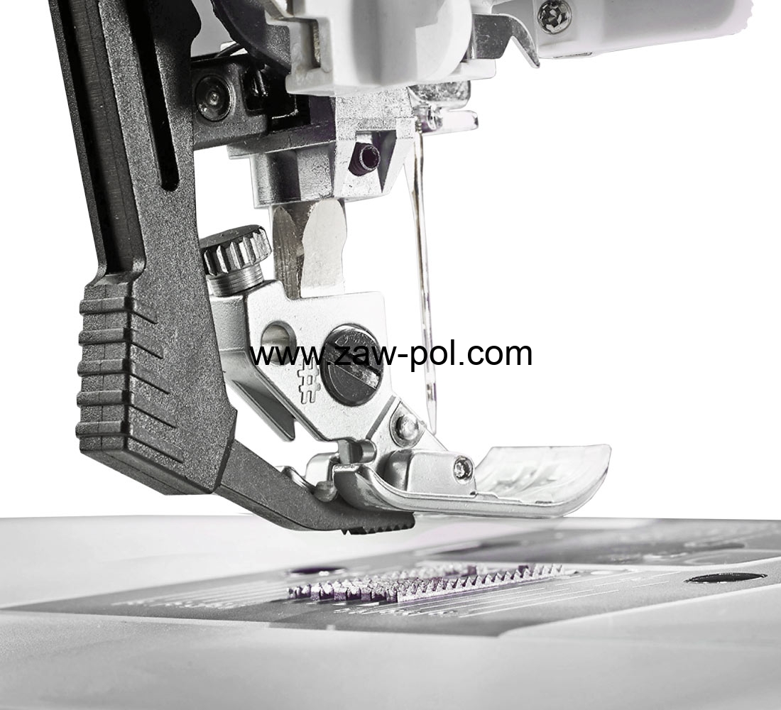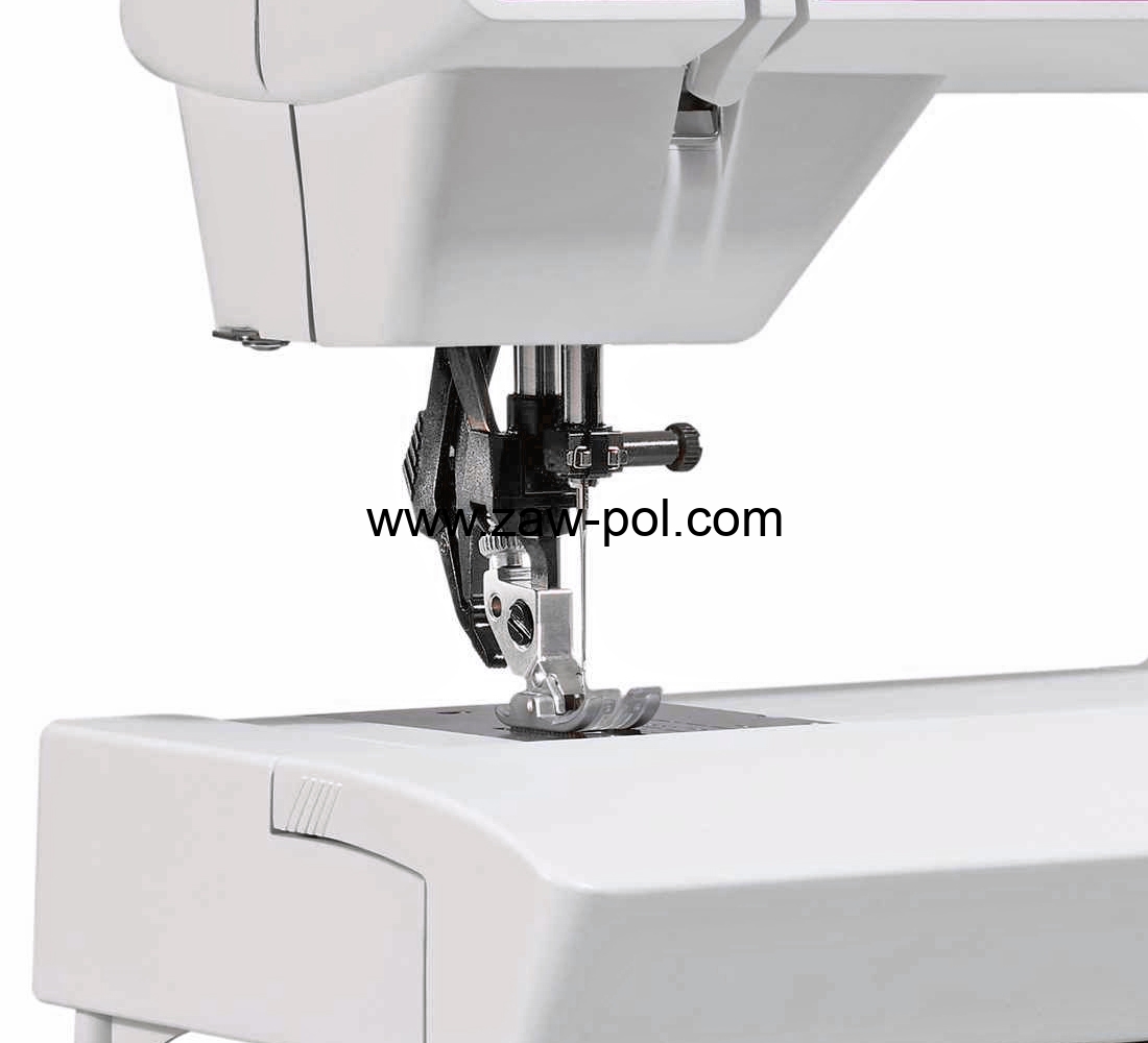 | Wyposażenie: | Standardowa stopka do systemu IDT Stopka do ściegu dekoracyjnego do systemu IDT Stopka do ściegu krytego do systemu IDT Stopka do wszywania zamków do systemu ITD Stopka do obszywania dziurek Prowadnik krawędziowy Podkładki filcowe Krążek na szpulkę (mały) Krążek na szpulkę (średni) Krążek na szpulkę (duży) Zestaw igieł Trzpienie na szpulkę Rozcinacz ściegów Pędzelek Bębenki Twarda pokrywa |
