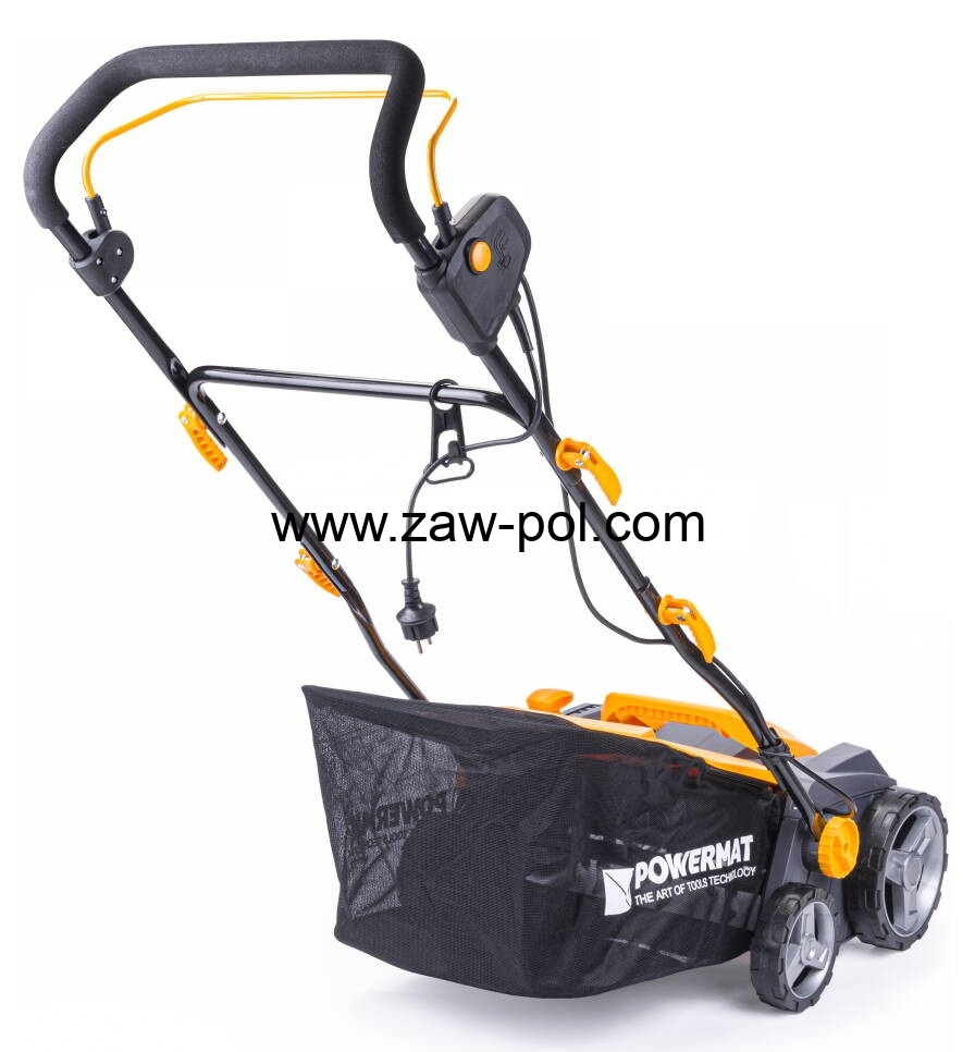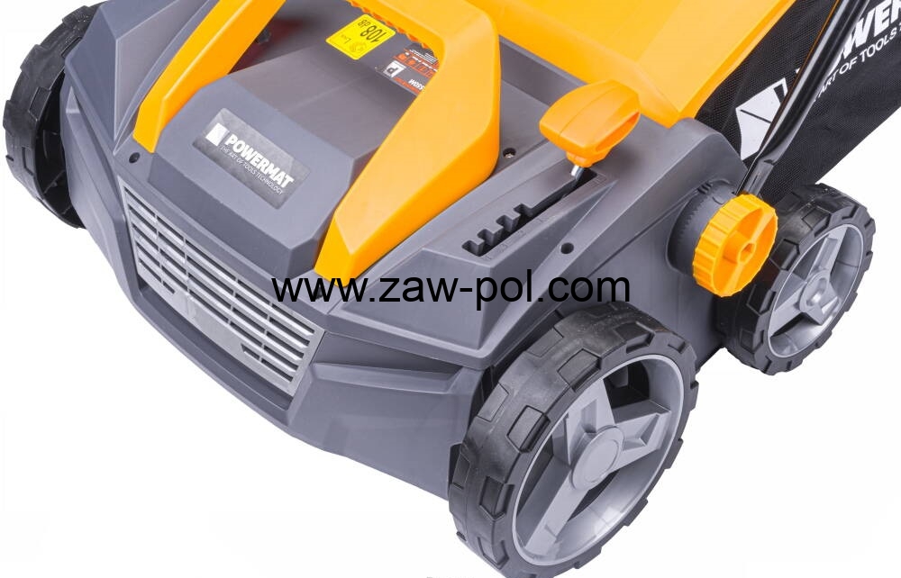 Aerator / Wertykulator elektryczny Powermat PM-AEW-2550M napędzany jest silnikiem elektrycznym o maksymalnej mocy 2550W, zapewniającym odpowiednią wydajność pracy.