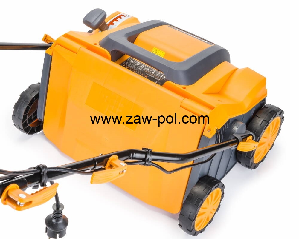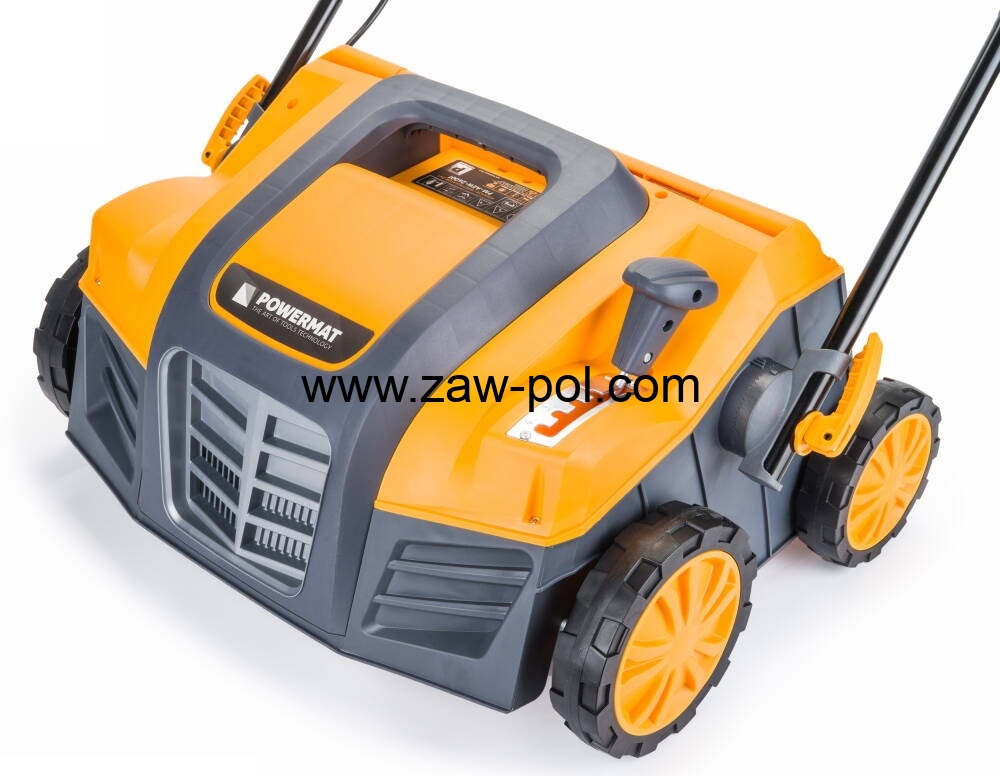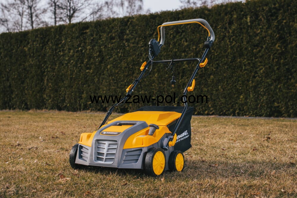 Aerator / Wertykulator elektryczny Powermat PM-AEW-2600T napędzany jest silnikiem elektrycznym o maksymalnej mocy 2600W, zapewniającym odpowiednią wydajność pracy.