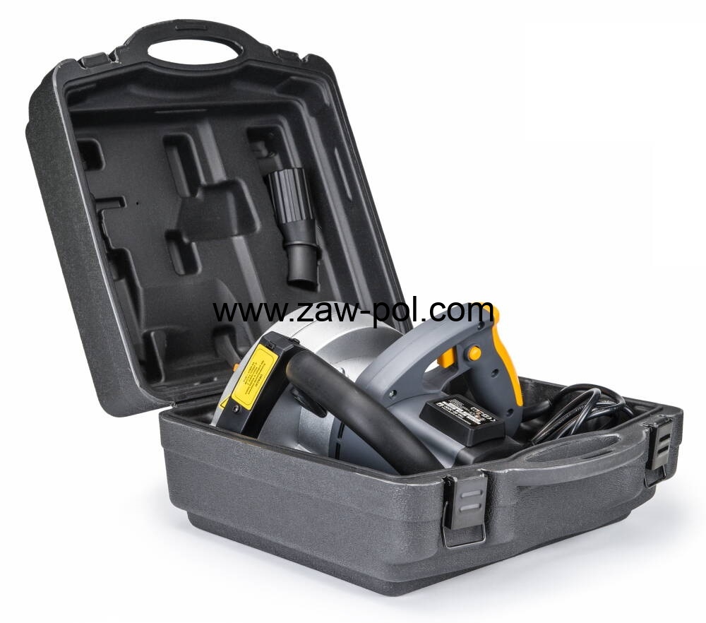 Solidna obudowa urządzenia zapewnia bezpieczeństwo oraz ergonomię pracy. Mocny uchwyt pozwala na precyzyjne prowadzenie urządzenia, a zintegrowany adapter do odprowadzania pyłu pozwala na zachowanie czystości.