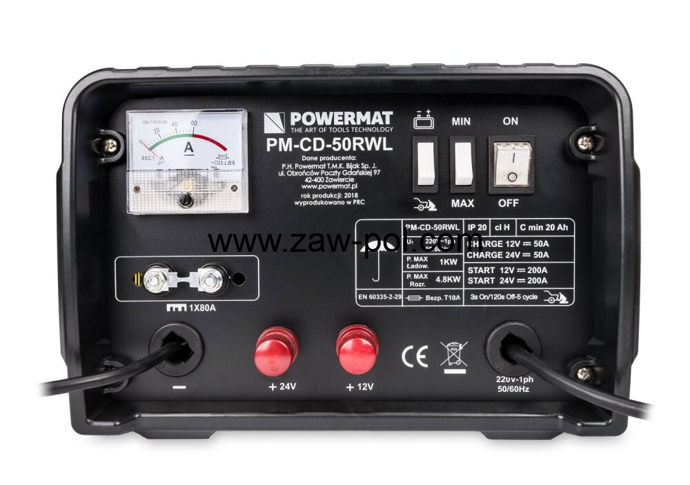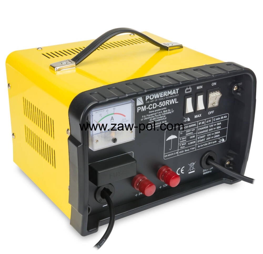 Wysokiej jakości automatyczny i precyzyjny prostownik akumulatorowy POWERMAT PM-CD-50RWL. Świetnie sprawdza się w profesjonalnych serwisach i warsztatach samochodowych jak i w przydomowych garażach. Urządzenie może ładować prądem o napięciu 12V i 24V.