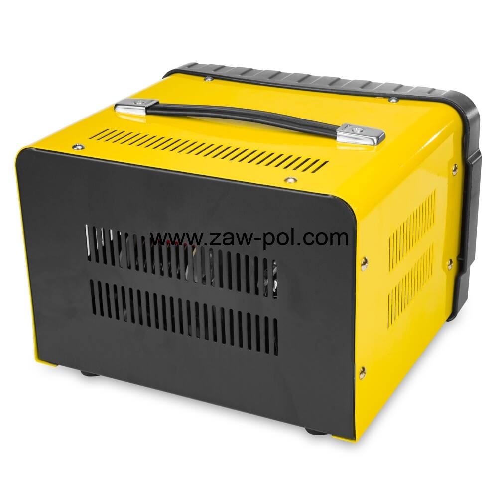 Metalowa obudowa prostownika posiada dużo otworów, dzięki czemu urządzenie jest dobrze wentylowane i chłodzone podczas pracy.