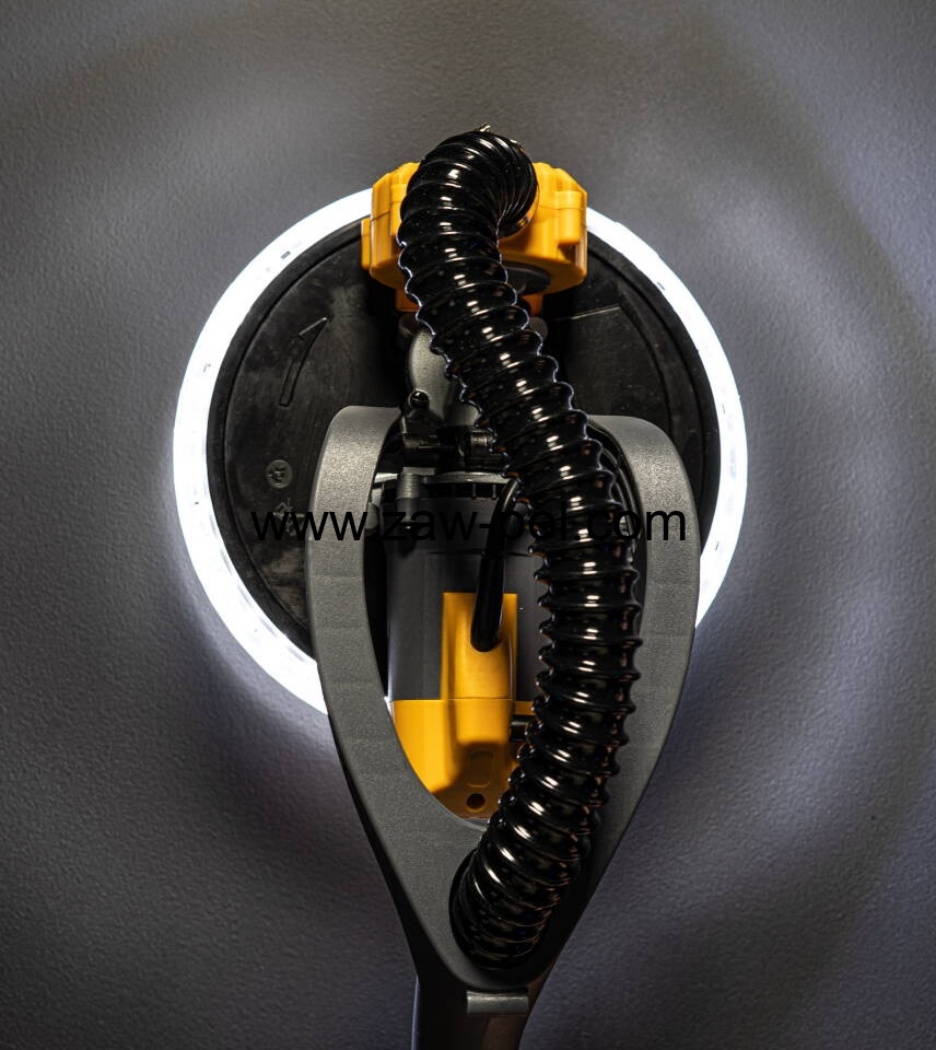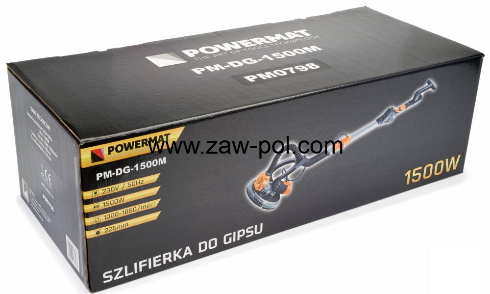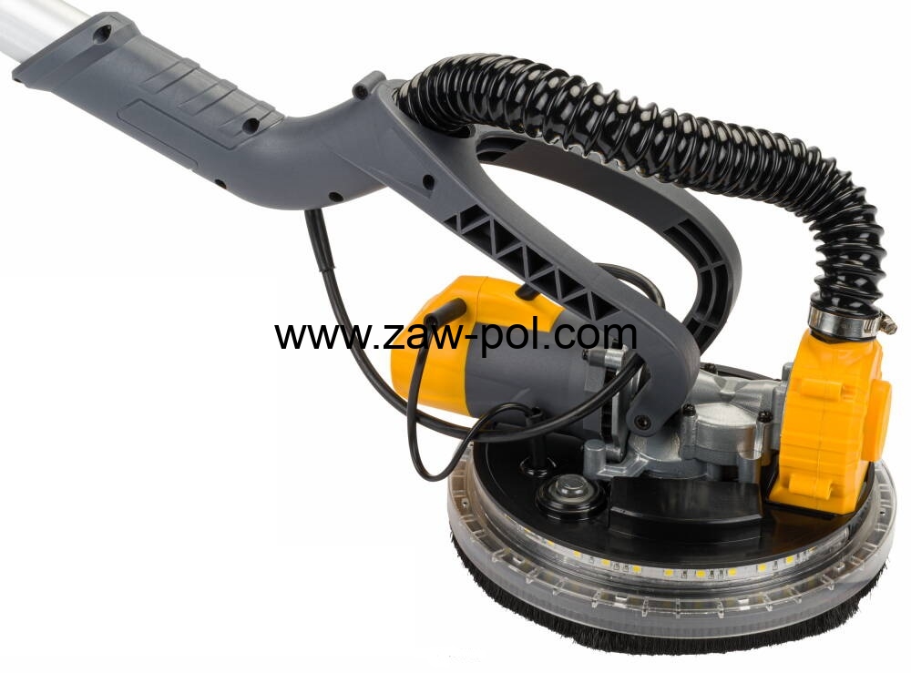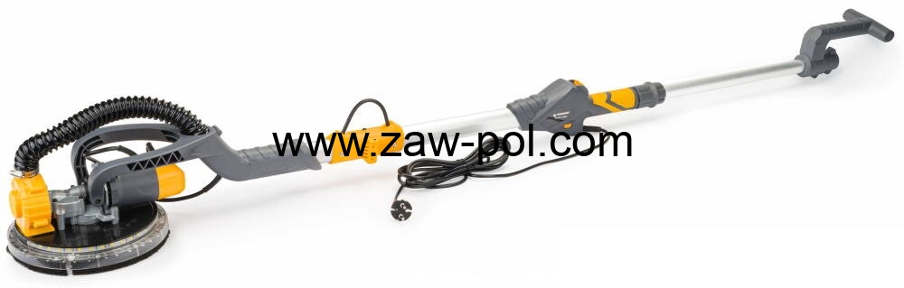 Szlifierka przegubowa bezpyłowa typu ŻYRAFA firmy POWERMAT model PM-DG-1500M. Urządzenie doskonale sprawdza się podczas szlifowania gładzi gipsowych na ścianach, sufitach, a także wyżej położonych powierzchniach.