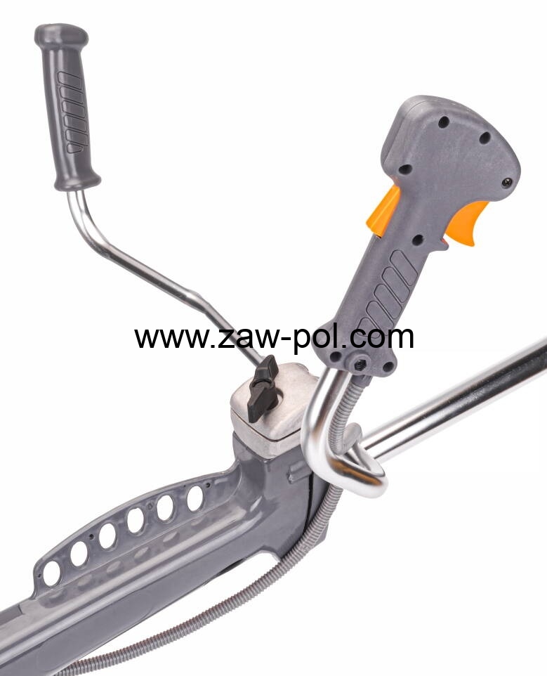 Kosa wyposażona jest w wygodny spust regulujący przepustnicę z blokadą przed przypadkowym naciśnięciem oraz włącznik i funkcję blokowania obrotów.