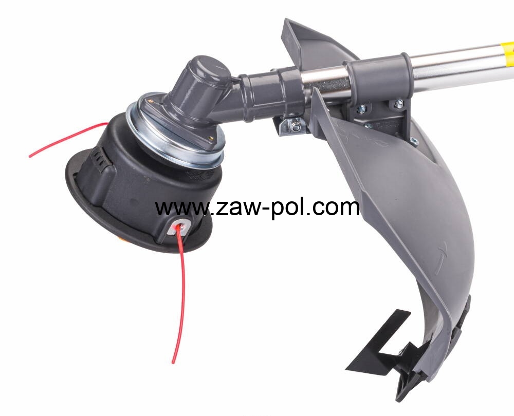 Osłona głowicy posiada nóż skracający nadmiar żyłki oraz wzmocnioną część stykową z podłożem.
