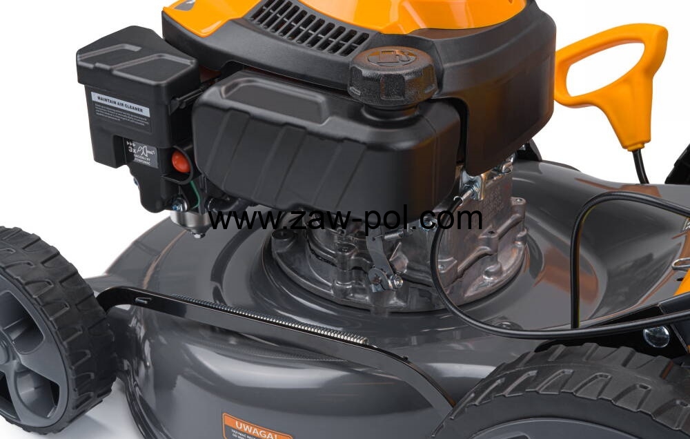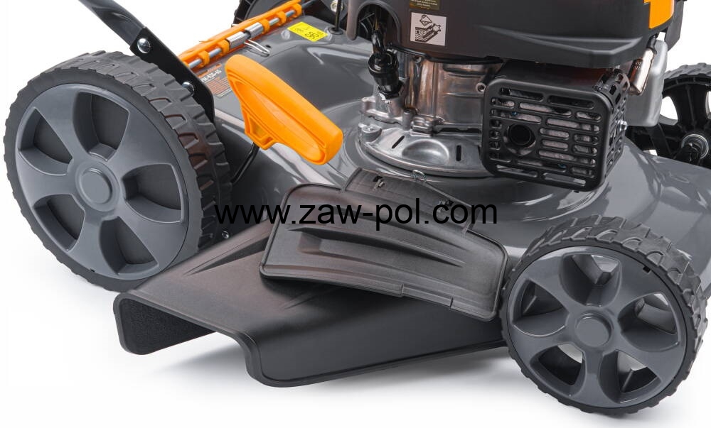 Funkcja napędu samobieżnego zapewnia większy komfort pracy. Pchanie urządzenia przez gęsta trawę lub po pochyłym terenie nie wymaga wysiłku, gdyż do poruszania kosiarki wykorzystywany jest jej własny napęd.