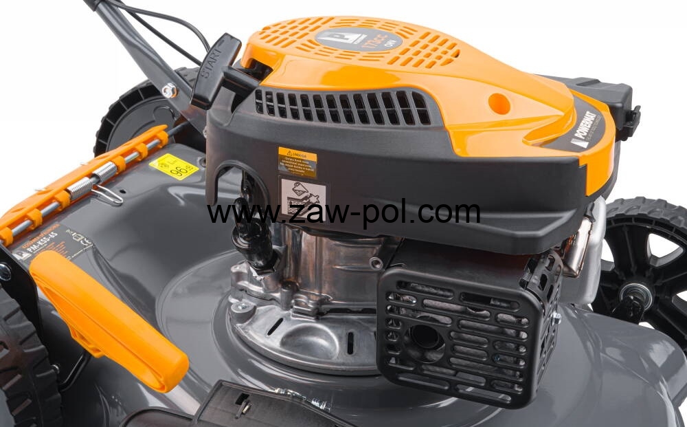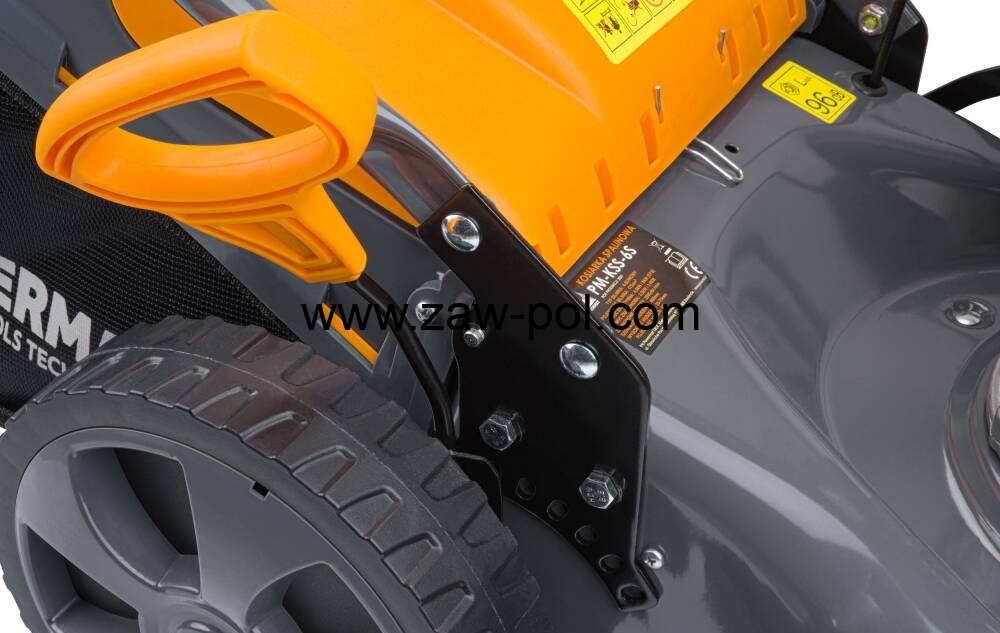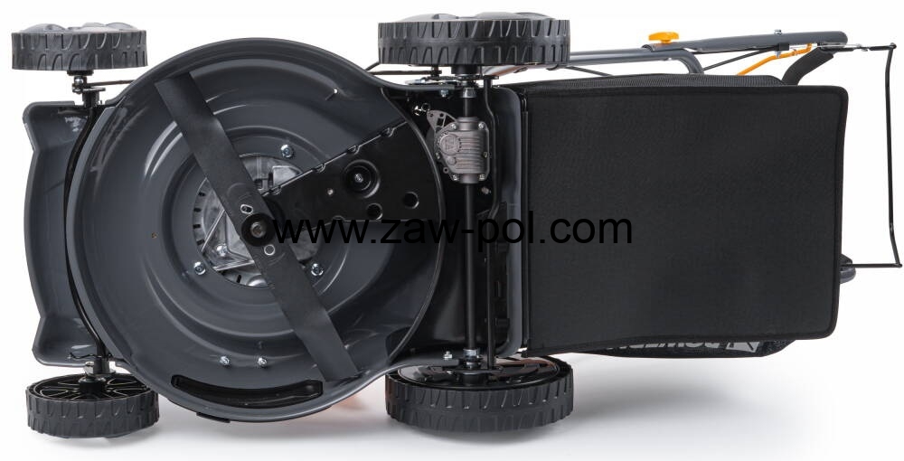 Nóż tnący kosiarki jest wykonany z hartowanej stali, co zapewnia długą żywotność ostrza. Szerokość koszenia kosiarki to aż 460 mm co pozwala na komfortową pracę na dużych powierzchniach. Mocowanie ostrza wraz z wytrzymałą śrubą daje wyjątkową wytrzymałość zespołu tnącego.