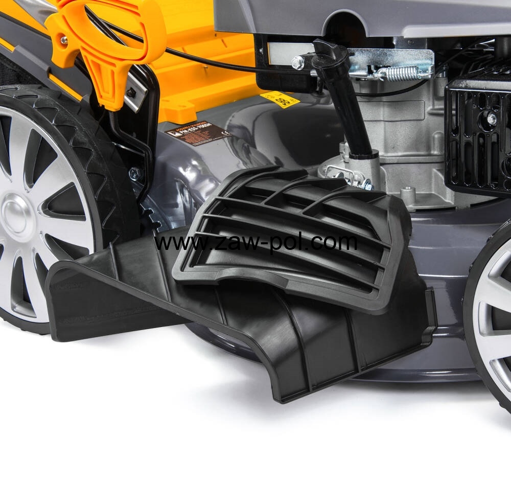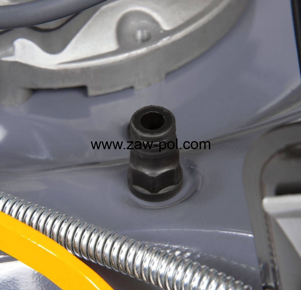W kosiarce zamontowany został króciec przyłącza wodnego. Standardowy króciec stosowany w większości węży można z łatwością podłączyć do kosiarki. Dzięki takiemu rozwiązaniu nie musimy podnosić kosiarki, aby umyć ją z pozostałości trawy.