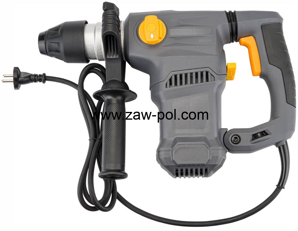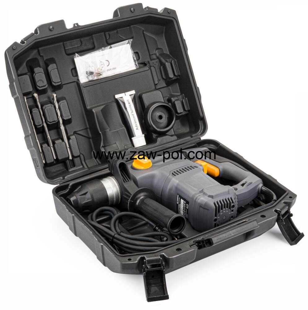 Młot udarowy POWERMAT PM-MU-2600M o mocy 2600W z systemem mocowania wierteł SDS-plus. System antywibracyjny rękojeści AVH redukuje wibracje powstałe podczas użytkowania.