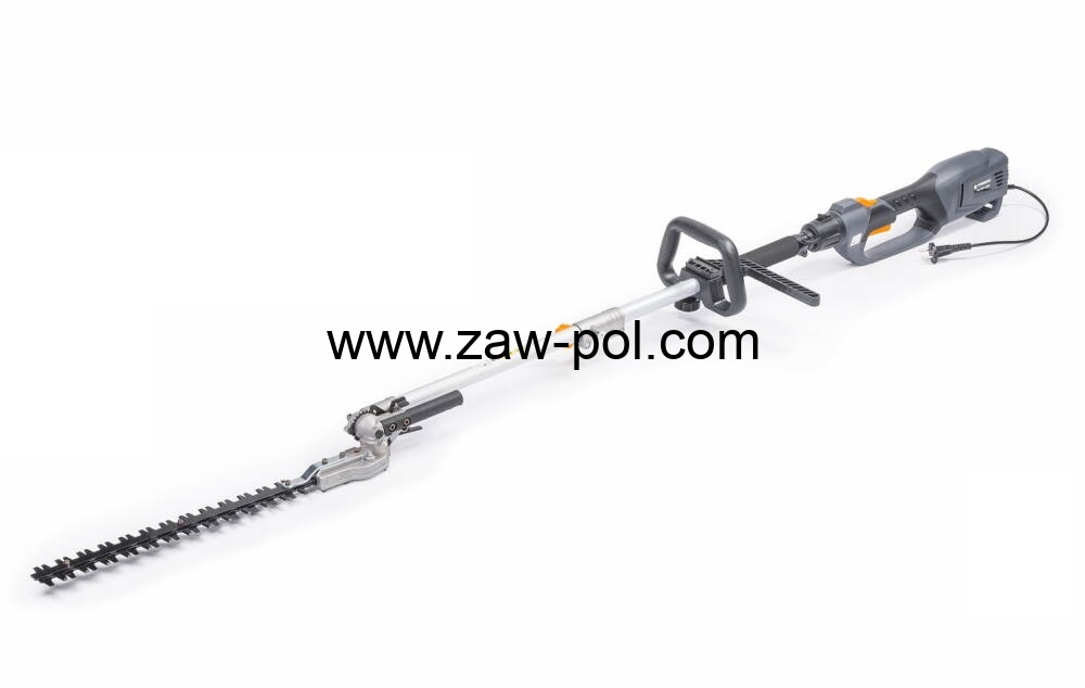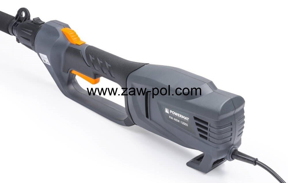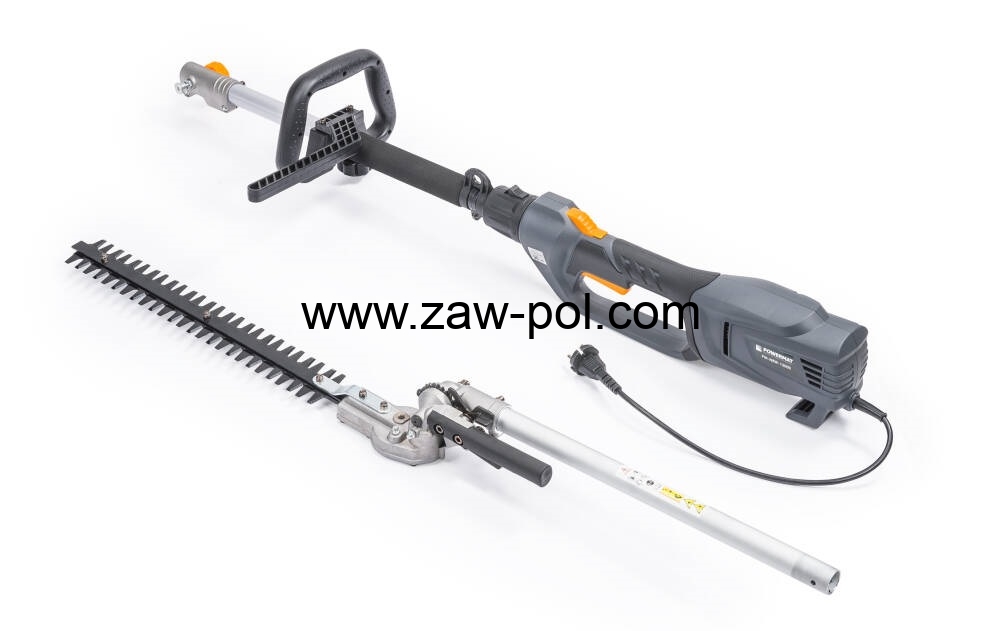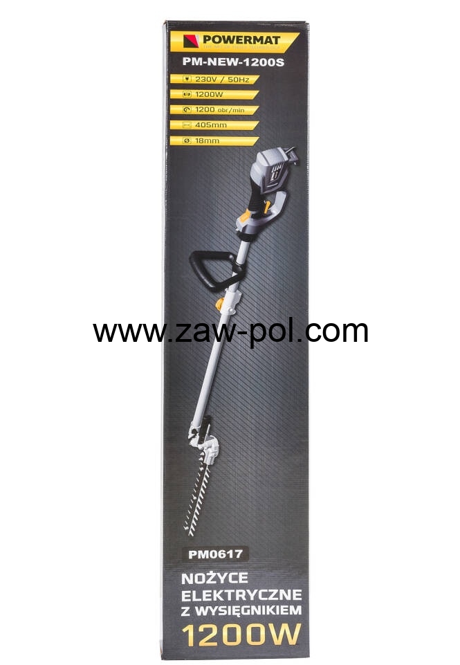 Nożyce elektryczne na wysięgniku z trzynasto-stopniową regulacją pochylenia firmy POWERMAT PM-NEW-1200S z wysokiej jakości ostrzem ze stali wysokowęglowej. Możliwość szybkiej i łatwej regulacji kątowej nożyc w dwóch płaszczyznach co bardzo ułatwia przycinanie krzewów. Silnik elektryczny o mocy 1200 W umożliwia cięcie gałęzi do 18 mm.