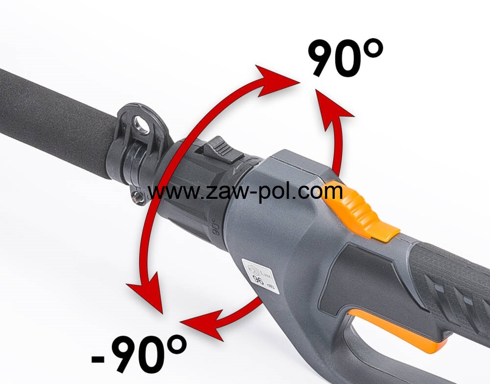 Za pomocą pierścienia można zmienić pozycję trzonu wału nożyc od -90° do 90° Regulacja ta pozwala na łatwy dostęp do trudnych miejsc.