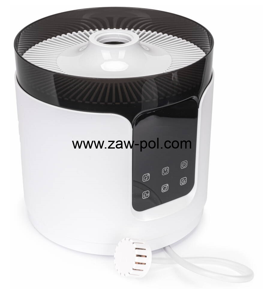 - Nawilżacz ten używa technologii fal ultradźwiękowych, zmienia czystą wodę w chłodną i orzeźwiającą parę, ponadto nie wymaga dodatkowych składników chemicznych i grzałki elektrycznej. Para wodna wytrąca pyłki, kurz i inne zanieczyszczenia powietrza gromadzące się w pomieszczeniu.