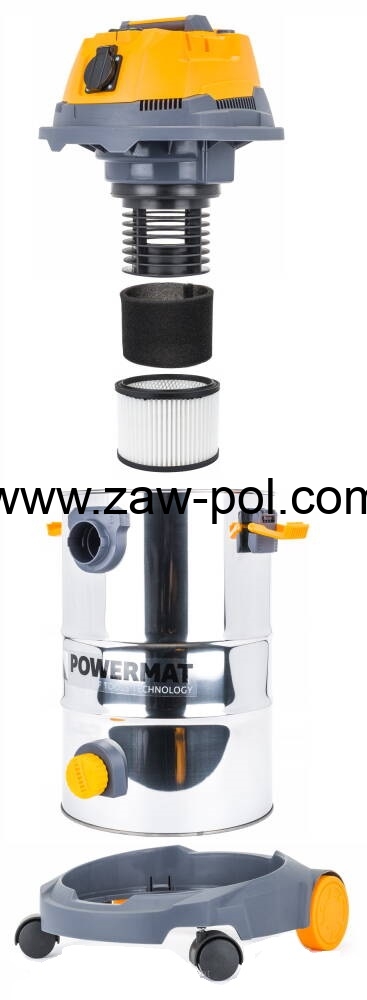 Odkurzacz przemysłowy Powermat PM-OD-30M FC idealnie nadaje się do czyszczenia mokrych i suchych powierzchni.