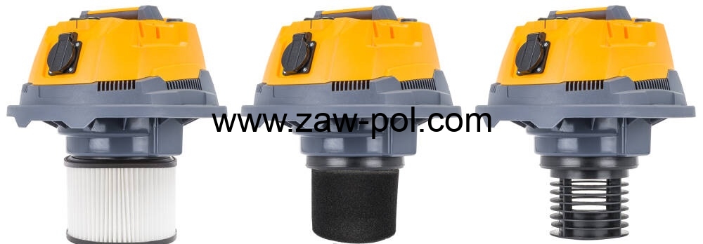 Urządzenie zostało przystosowane do pracy na sucho, jak i na mokro. Dodatkowo dla wygody użytkowania w zbiorniku zamontowano korek do spuszczania wody.