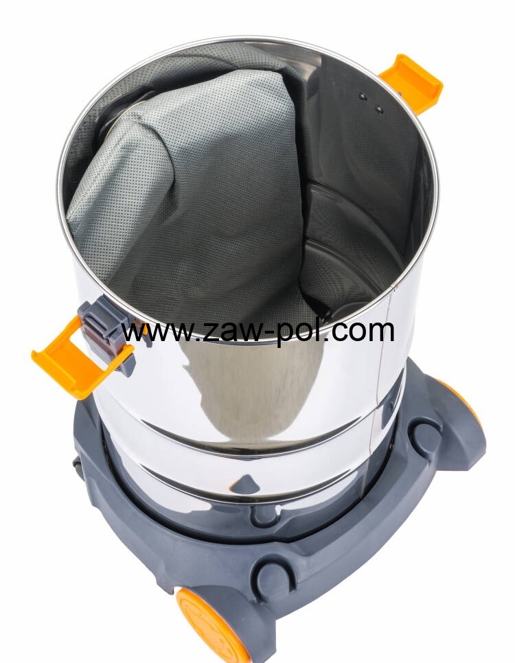 W urządzeniu tym zastosowano wysokowydajny silnik elektryczny heavy duty, o mocy 1600W, w silniku zastosowano podwójny wentylator, celem zwiększenia wytwarzanego podciśnienia co przekłada się na wydajności ssania, bez konieczności stosowania silnika o większym poborze prądu. Wytrzymały zbiornik ze stali nierdzewnej oraz gniazdo do podłączenia elektronarzędzi.