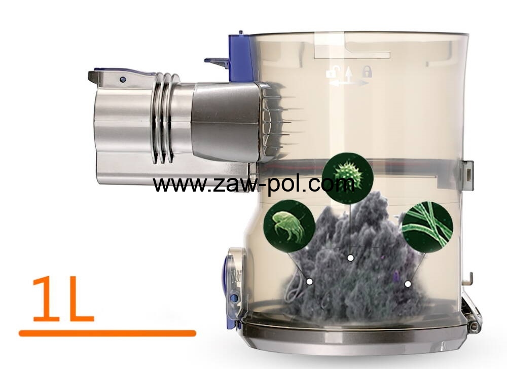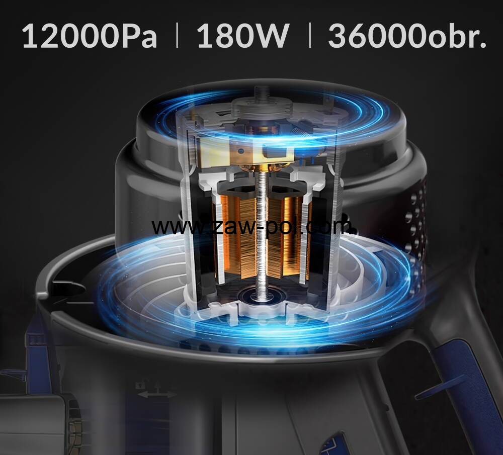 - Cyklonowy system pracy, który przy 12 kPa mocy ssania wydobędzie każdy pył i kurz.