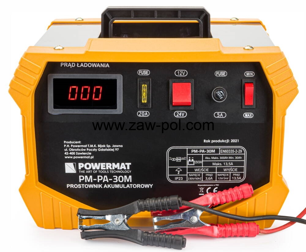 Wysokiej jakości automatyczny i precyzyjny prostownik akumulatorowy POWERMAT PM-PA-30M. Świetnie sprawdza się w profesjonalnych serwisach i warsztatach samochodowych jak i w przydomowych garażach. Urządzenie może ładować prądem o napięciu 12V i 24V.