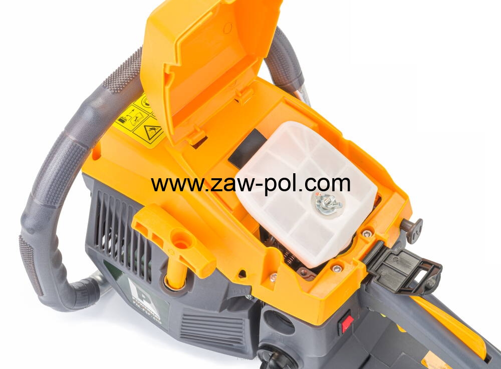 Piła wykonana jest z najwyższej jakości podzespołów zamkniętych w solidnym aluminiowo-magnezowym karterze. Zastosowany wzmocniony stop magnezowy AS 31, ma zwiększoną wytrzymałość na rozciąganie oraz dużo wyższą twardość od innych metali stosowanych do produkcji pił spalinowych.