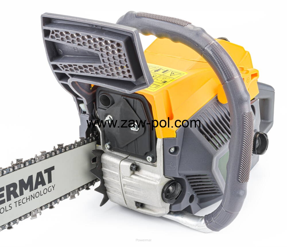 Piła spalinowa PM-PSP-6HP firmy POWERMAT jest najnowszym modelem piły spalinowej do zastosowań zarówno amatorskich jak i profesjonalnych. Maksymalna moc urządzenia to 6,0KM uzyskiwana przez silnik o pojemności 54cm³.