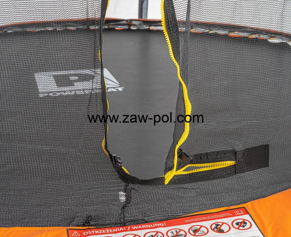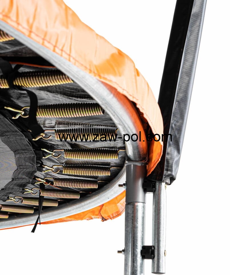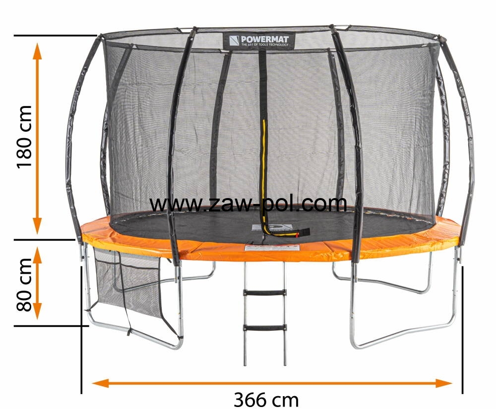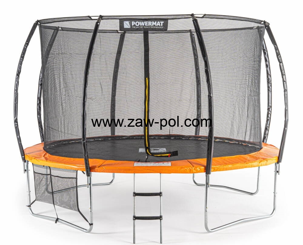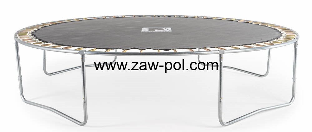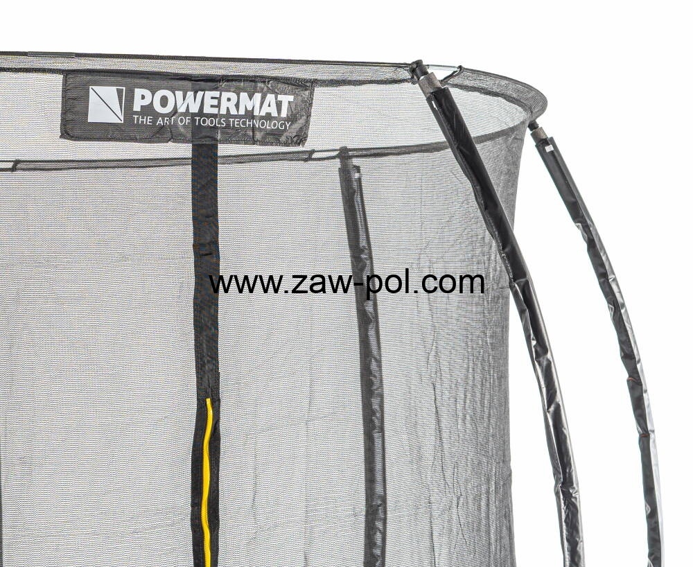 Trampolina POWERMAT jakościowo przygotowana jest na trudniejsze warunki. Posiada górny stelaż na siatkę z włókna węglowego, który bez problemu wygnie się przy naciągnięciu oraz nałoży i zablokuje na automatyczne zaczepy blokujące. Ponadto galwanizowana konstrukcja słupków, nóg i obręczy odporna jest na warunki atmosferyczne.