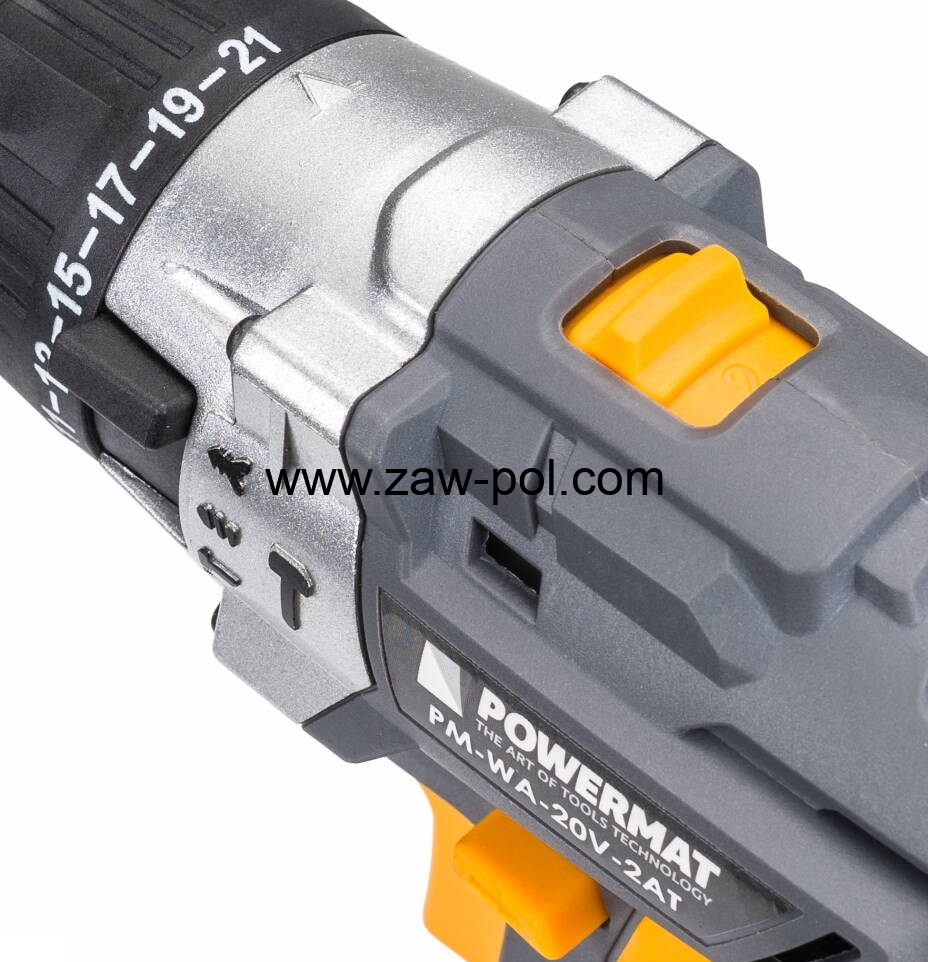 Wkrętarka wyposażona jest w sprzęgło posiadające 21-pozycji regulacji momentu obrotowego dla efektywnego wkręcania różnych rozmiarów wkrętów w różnego rodzaju materiały. A także przełącznik dwu biegowy zmieniający zakres obrotów wkrętarki (0-350rpm / 0-1300rpm).