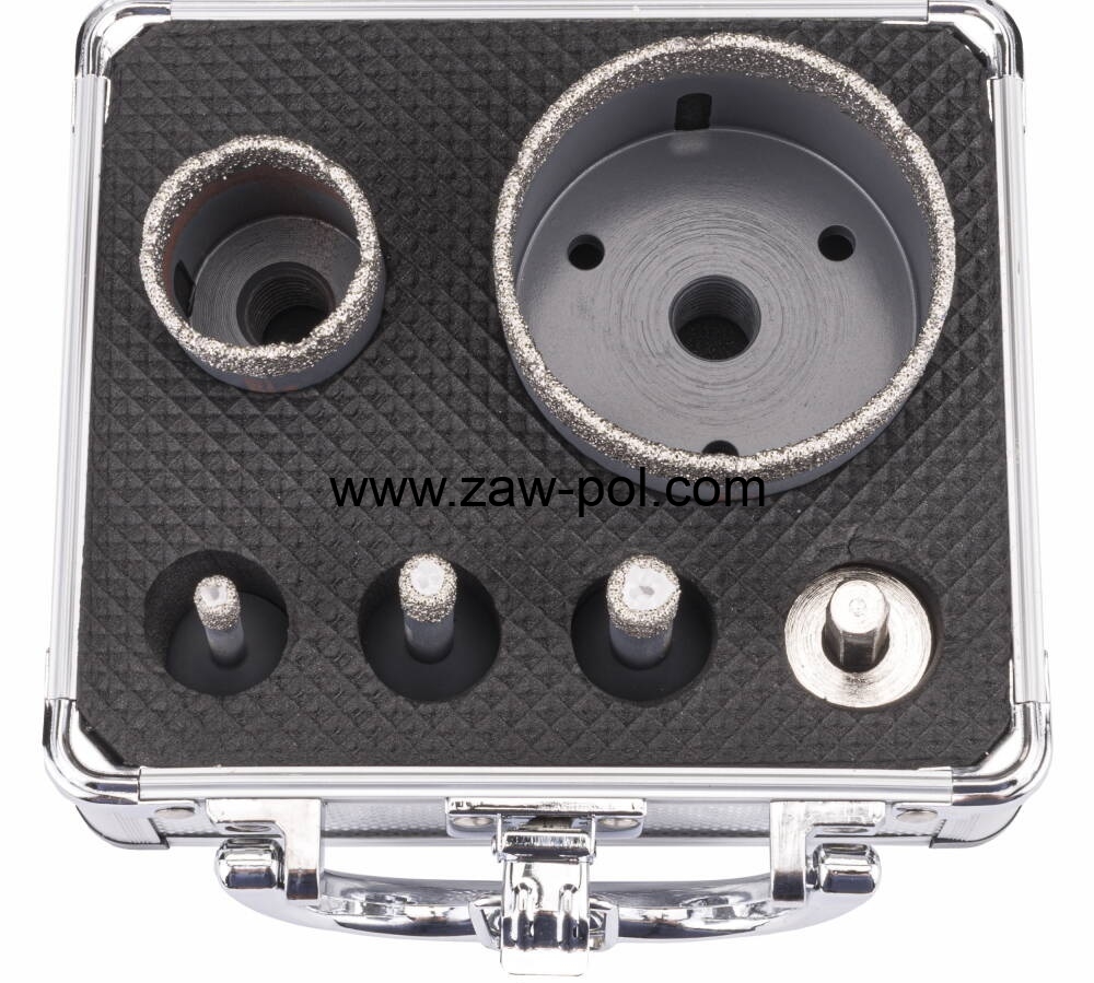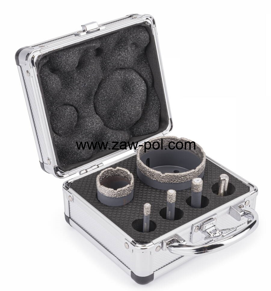 Otwornice: 68 / 35 / 10 / 8 / 6 [mm]; Adapter: (M14 / HEX); Walizka aluminiowa.