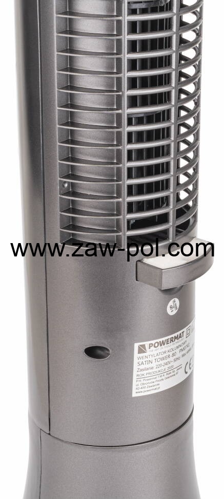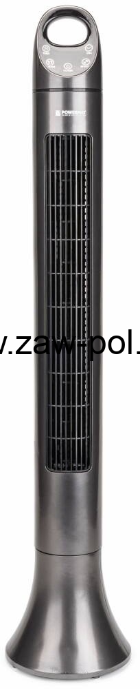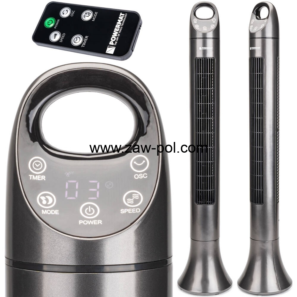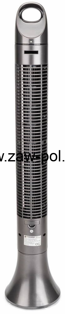 Wentylator kolumnowy (wieżowy) marki POWERMAT model Satin Tower-80 z racji swoich wymiarów (wysokość 98cm) siła dmuchania jest większa przy mniejszej prędkości obrotowej. Dzieki takim wymiarom wentylator jest cichszy niż mniejsze wersje.