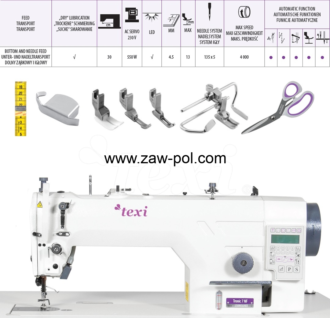 TEXI VARIO NF 6 - niezbędnik podnoszący jakość i ułatwiający pracę, do stebnówki z transportem igłowym: