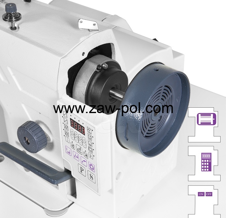 - automatyczne funkcje: obcinanie nici, ryglowanie, podnoszenie stopki, pozycjonowanie igły, odrzutnik nitki,