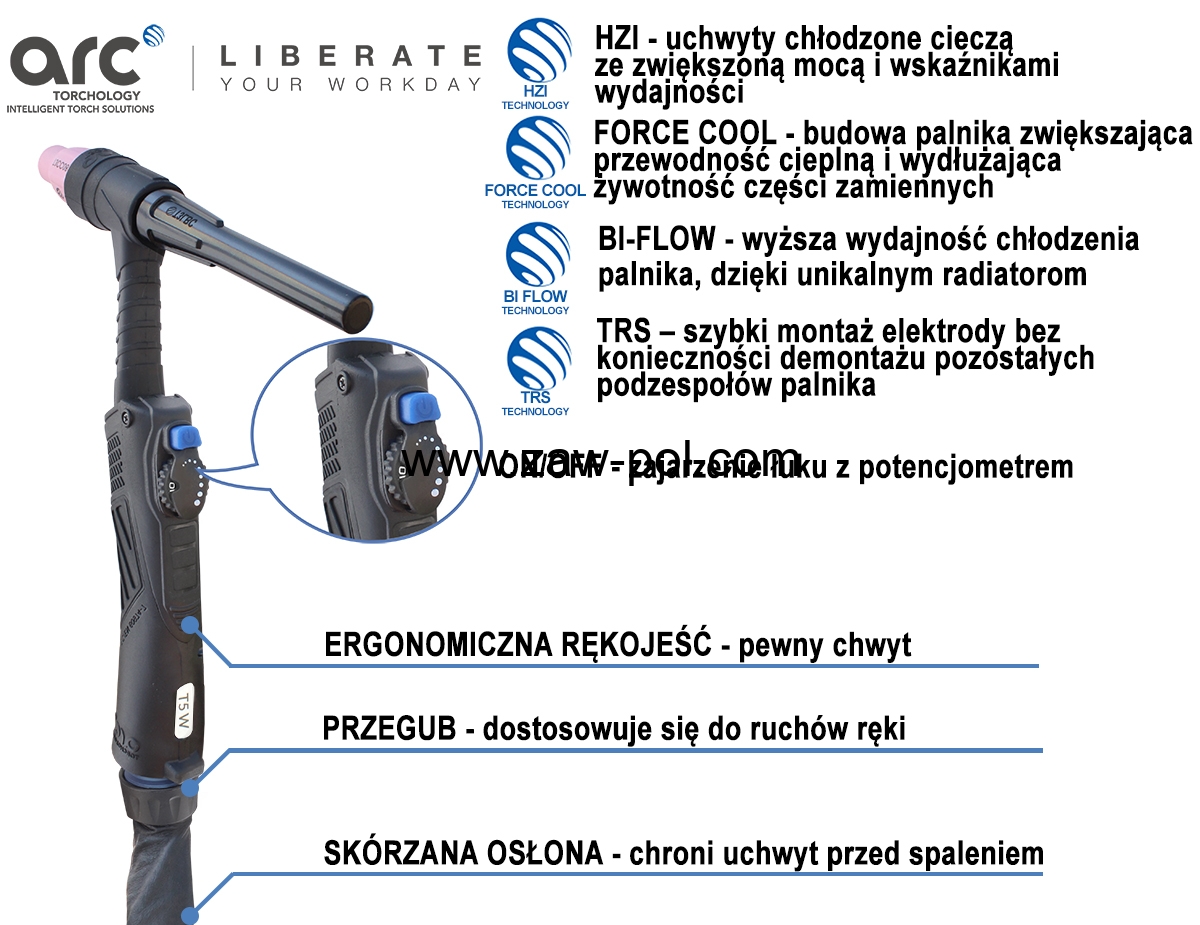 - uchwyt TIG ARC T5W 4 mb. (UWAGA! uchwyt chłodzony cieczą, zestaw nie zawiera chłodnicy!)