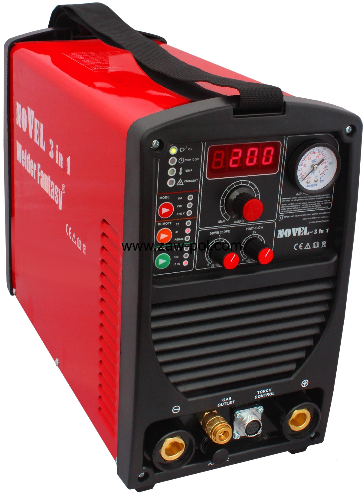 Spawarka serii Welder Fantasy NOVEL 3w1 jest zintegrowanym multifunkcyjnym urządzeniem spawalniczym umożliwiającym spawanie metodą TIG DC i MMA oraz ręczne cięcie plazmowe z mocą 50A.