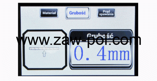 TIG AUTO – ustawienia synergiczne. W trybie AUTO użytkownik dokonuje wyboru podstawowych parametrów spawania takich jak rodzaj materiału i grubość spawanego materiału. Pozostałe parametry urządzenie dobiera automatyczne korzystając z bazy wgranych programów.