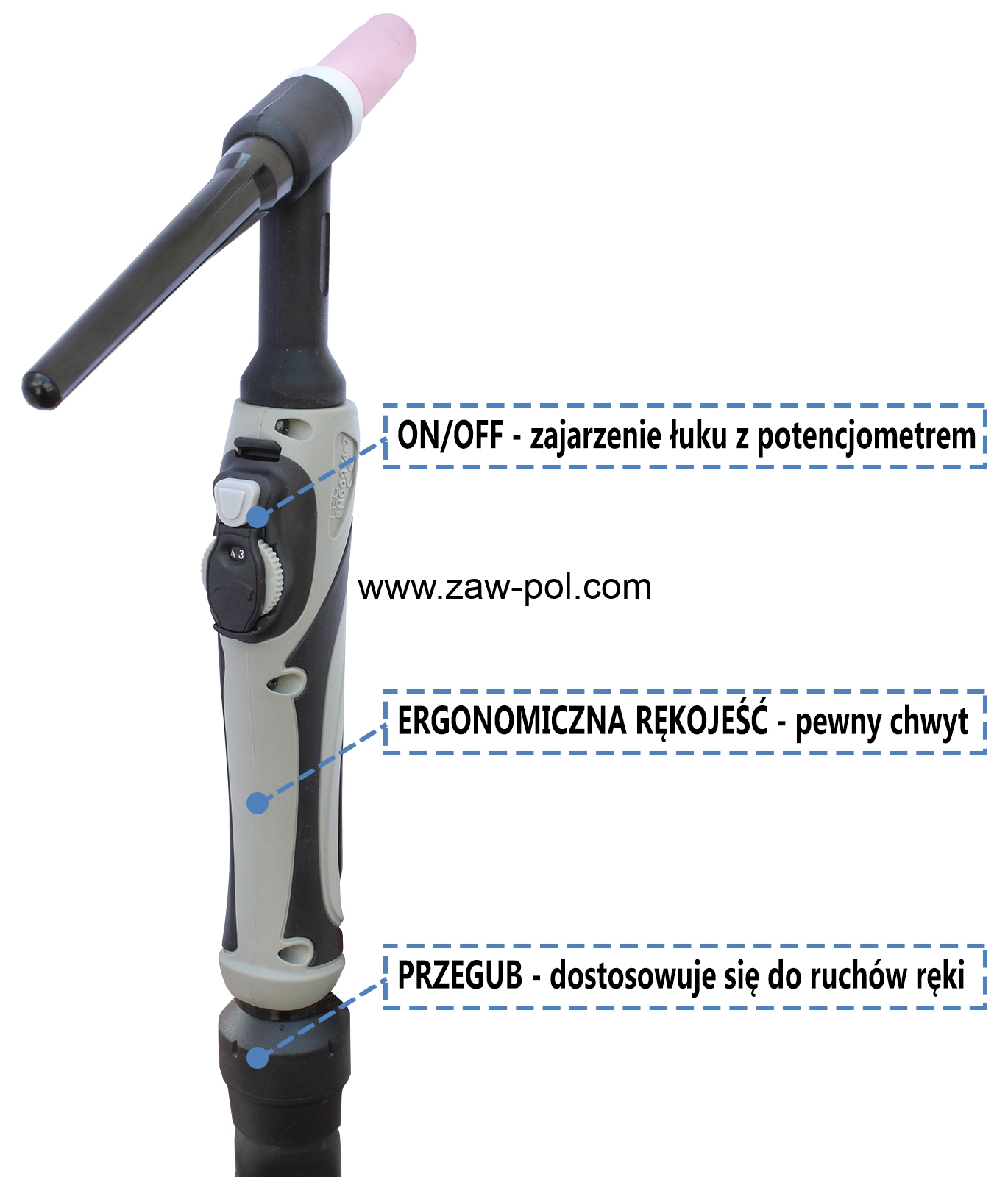 - uchwyt spawalniczy TIG typ SRT-26 z regulacją w rękojeści,